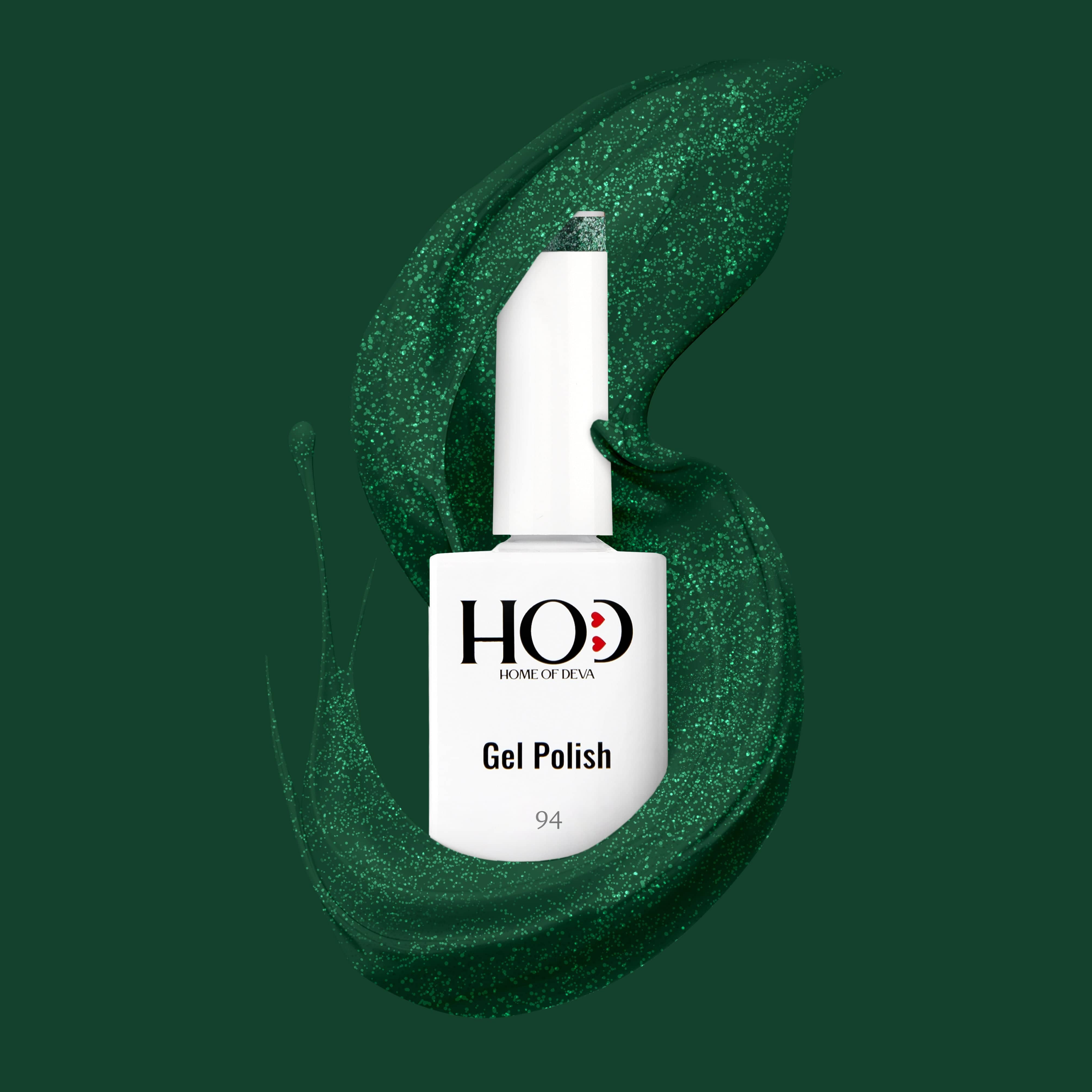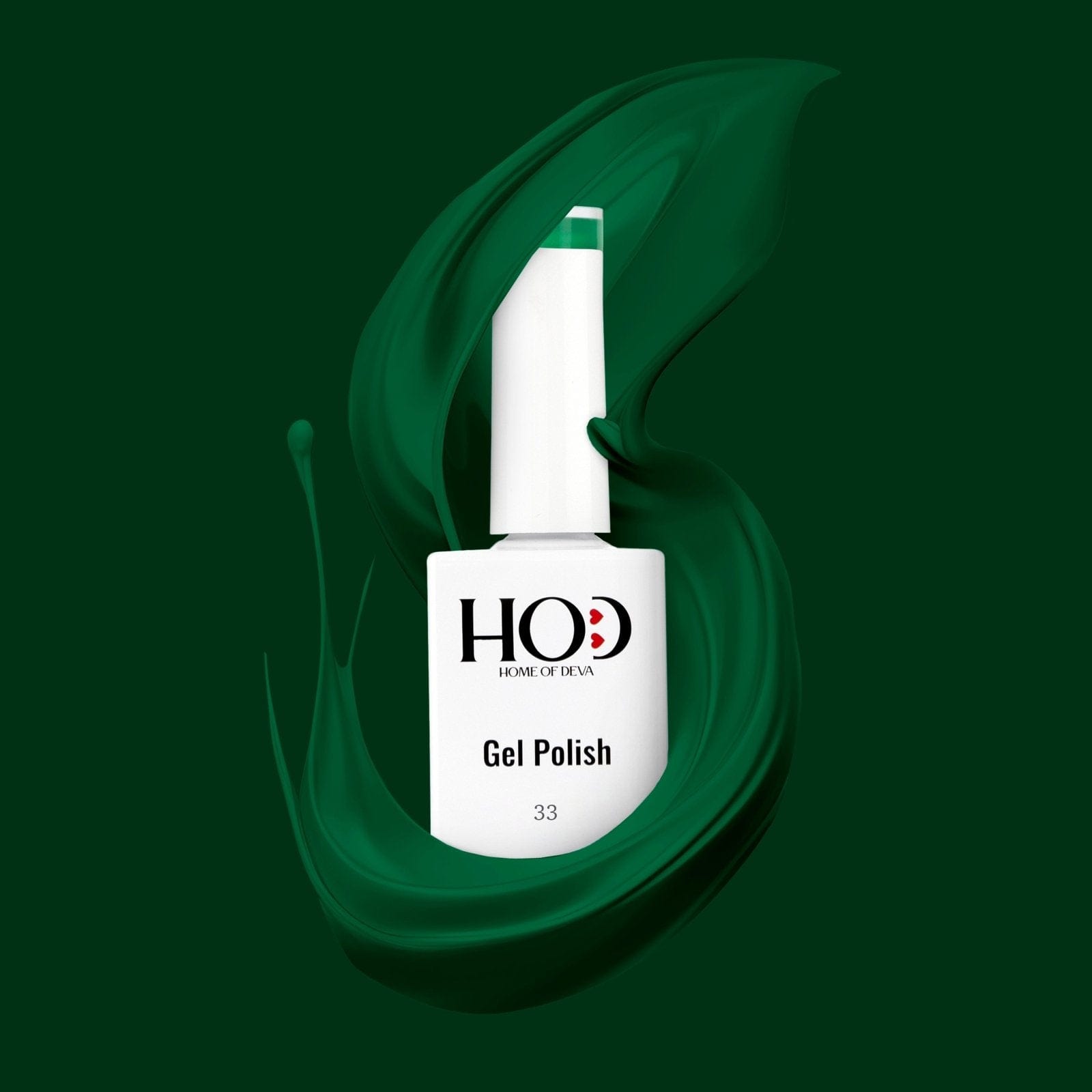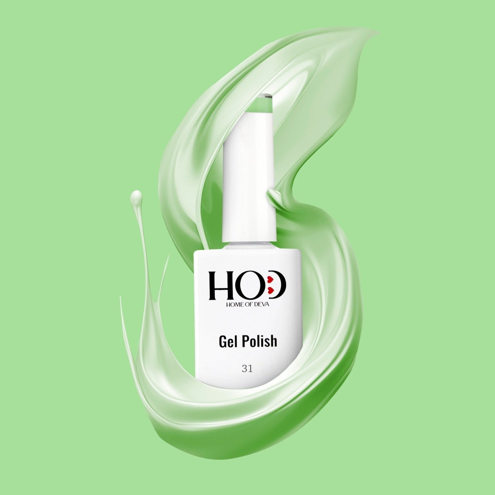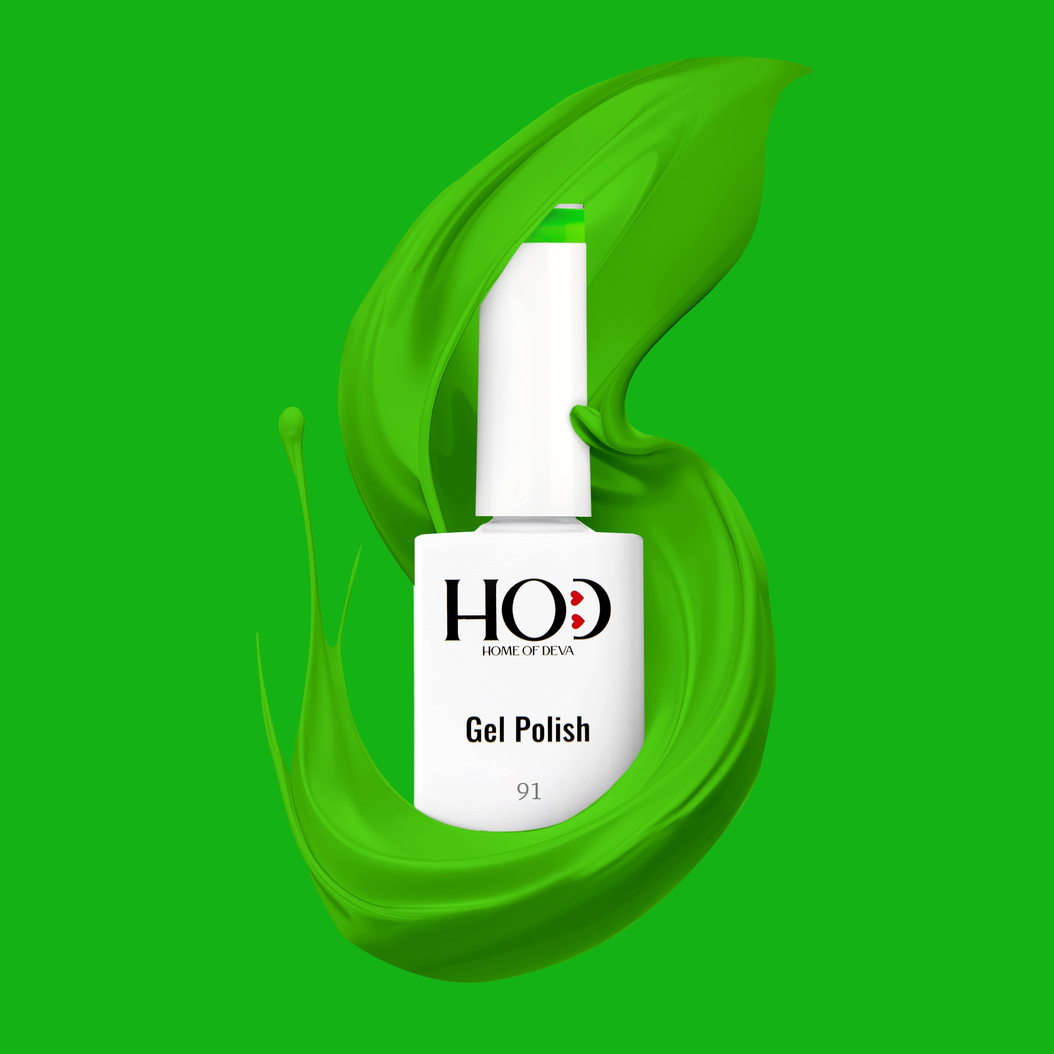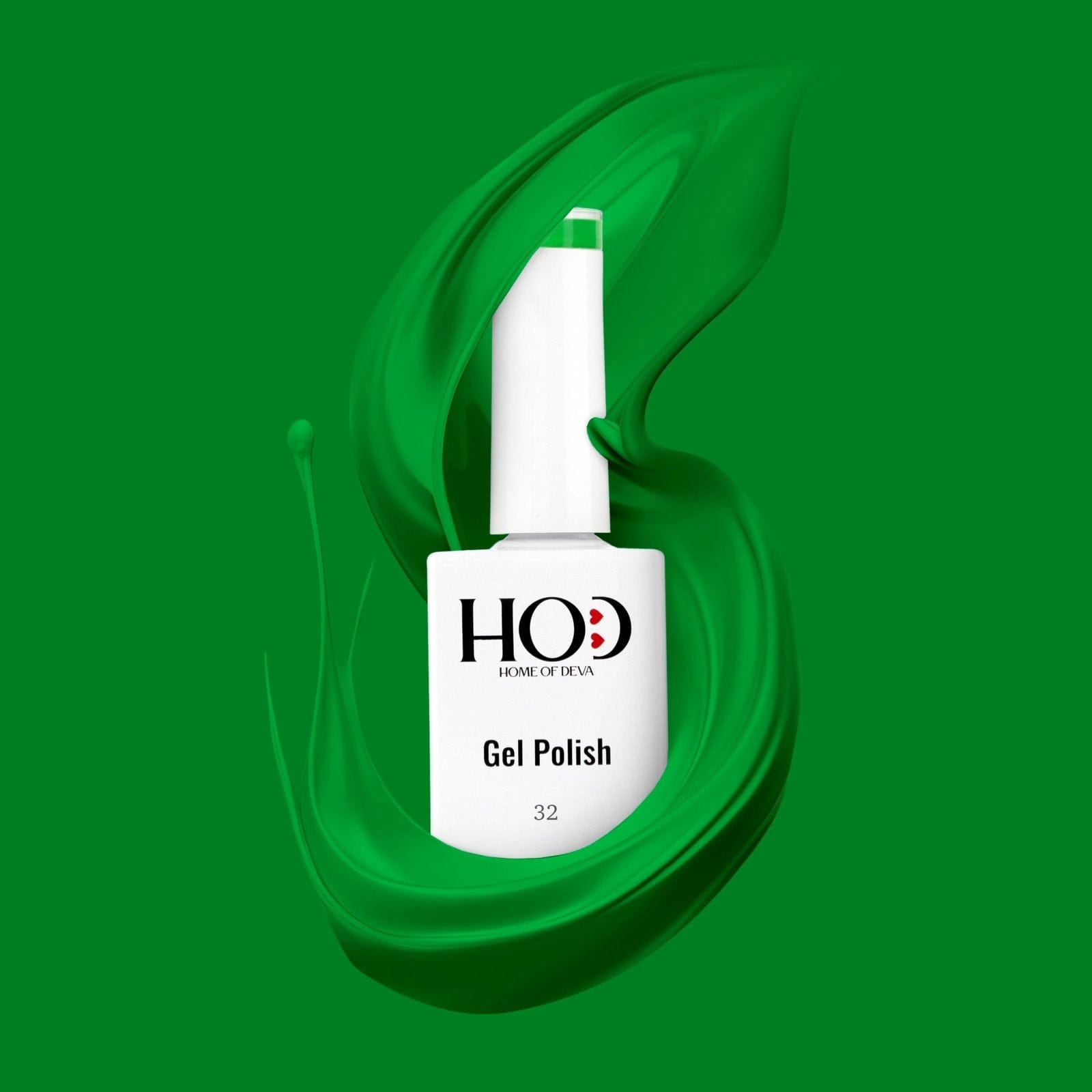 - Extiende dos capas finas del esmalte verde elegido, curando cada una bajo lámpara LED/UV.