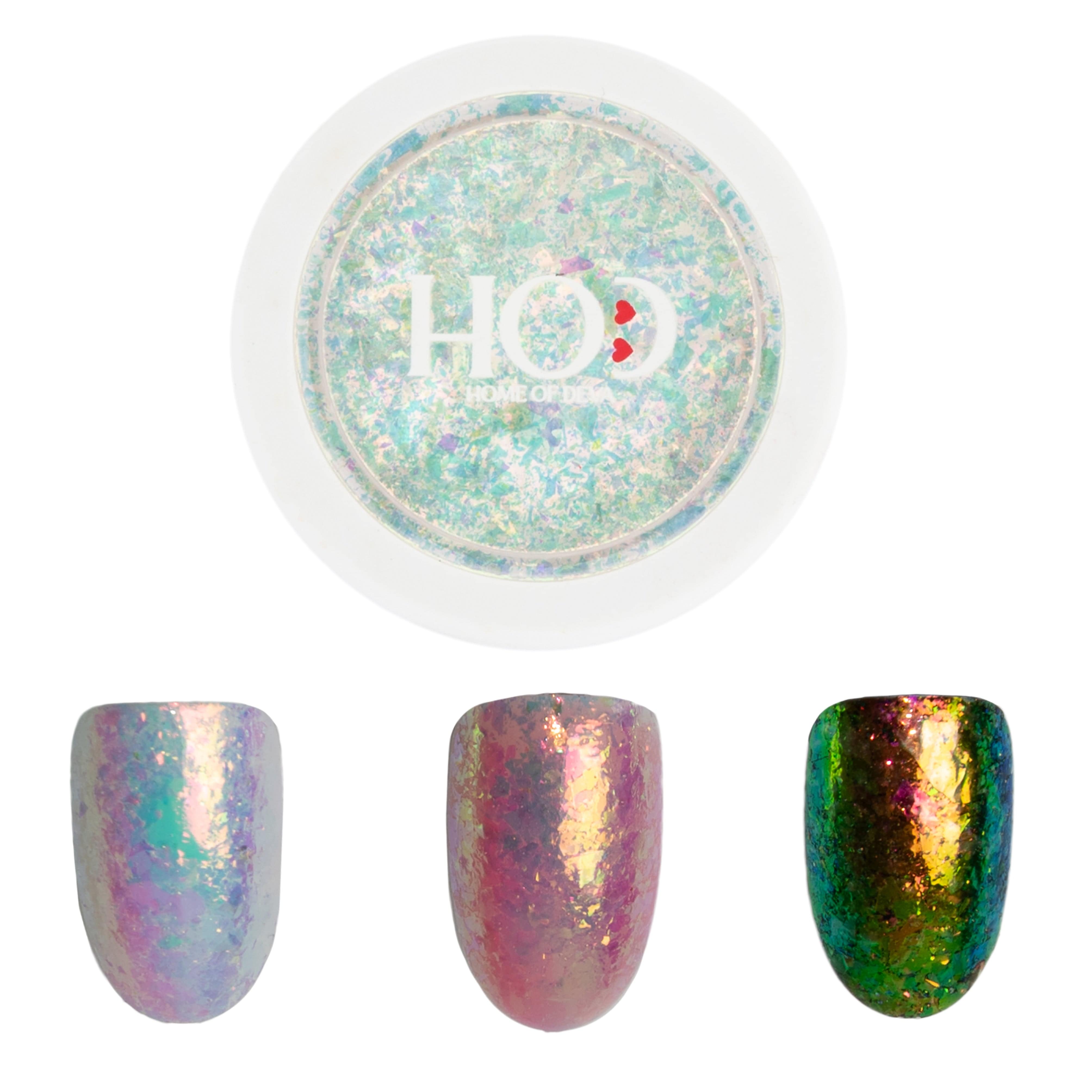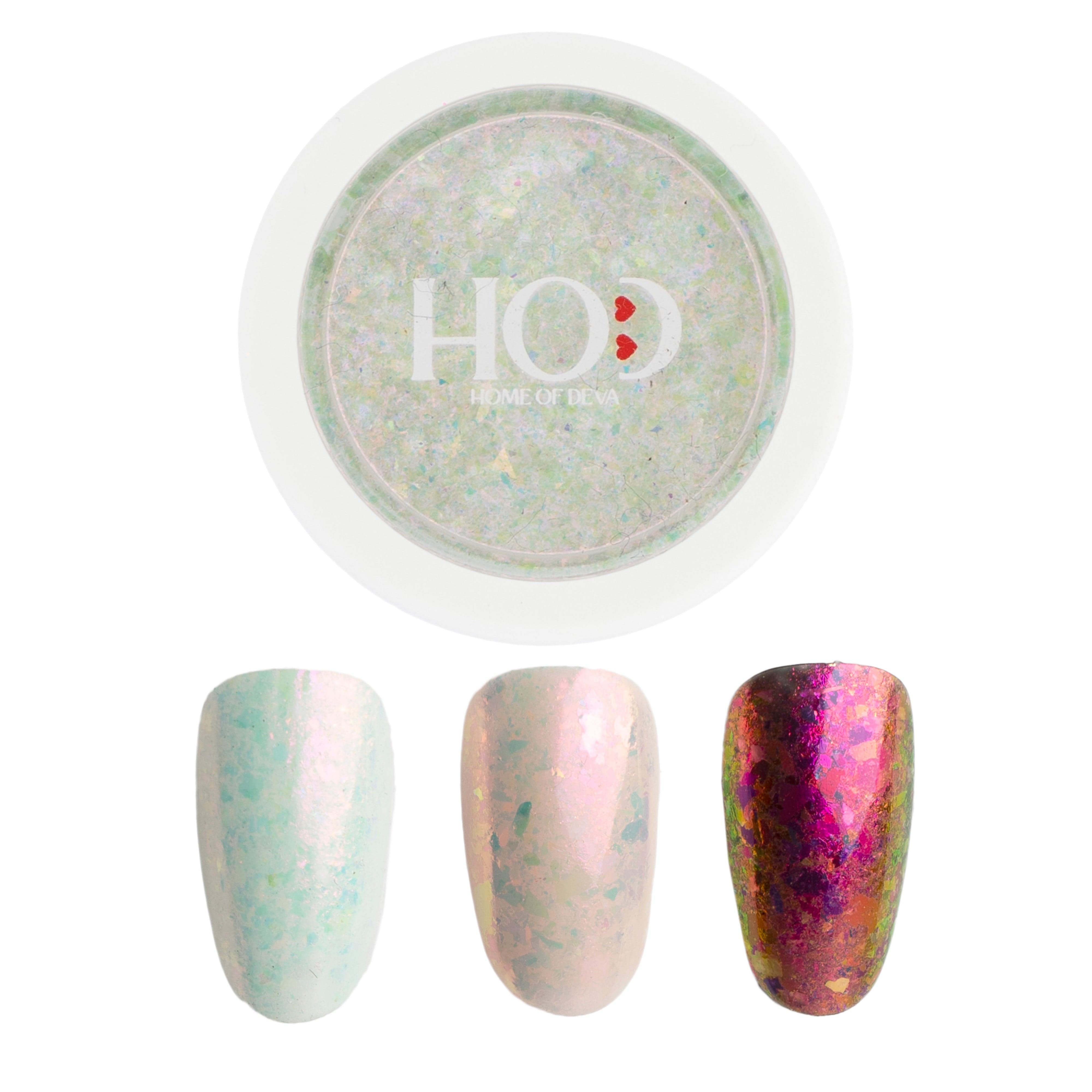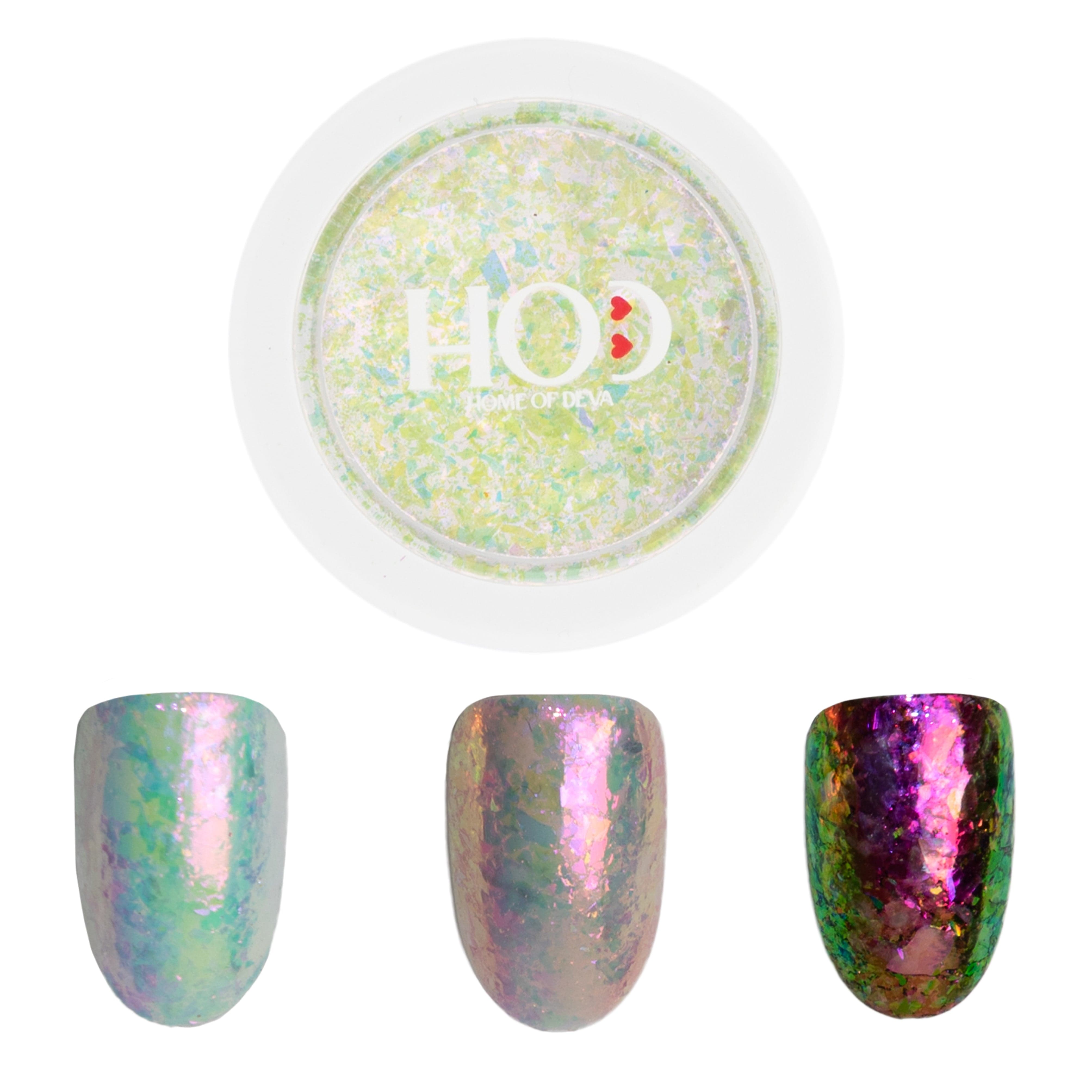 - Además de los Chrome Magic Flakes No. 1 y No. 2, existen otras opciones como lentejuelas y copos holográficos.